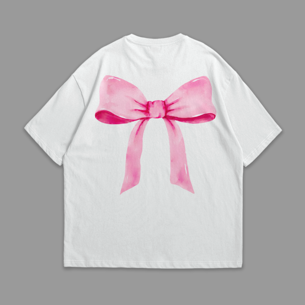 Embrace the charm of soft femininity with our Coquette Oversized Tee, a must-have in your wardrobe! Featuring a delicate pink bow graphic on both the front and back, this custom-designed piece perfectly blends playful elegance with everyday comfort.