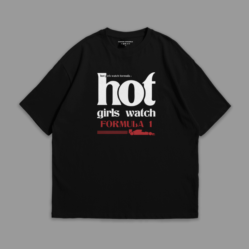 Make a bold statement with the Hot Girls Watch F1 Tee by Custom Apparels. Designed with striking retro typography and a sleek Formula 1 car graphic, it’s the perfect fusion of racing passion and modern streetwear.